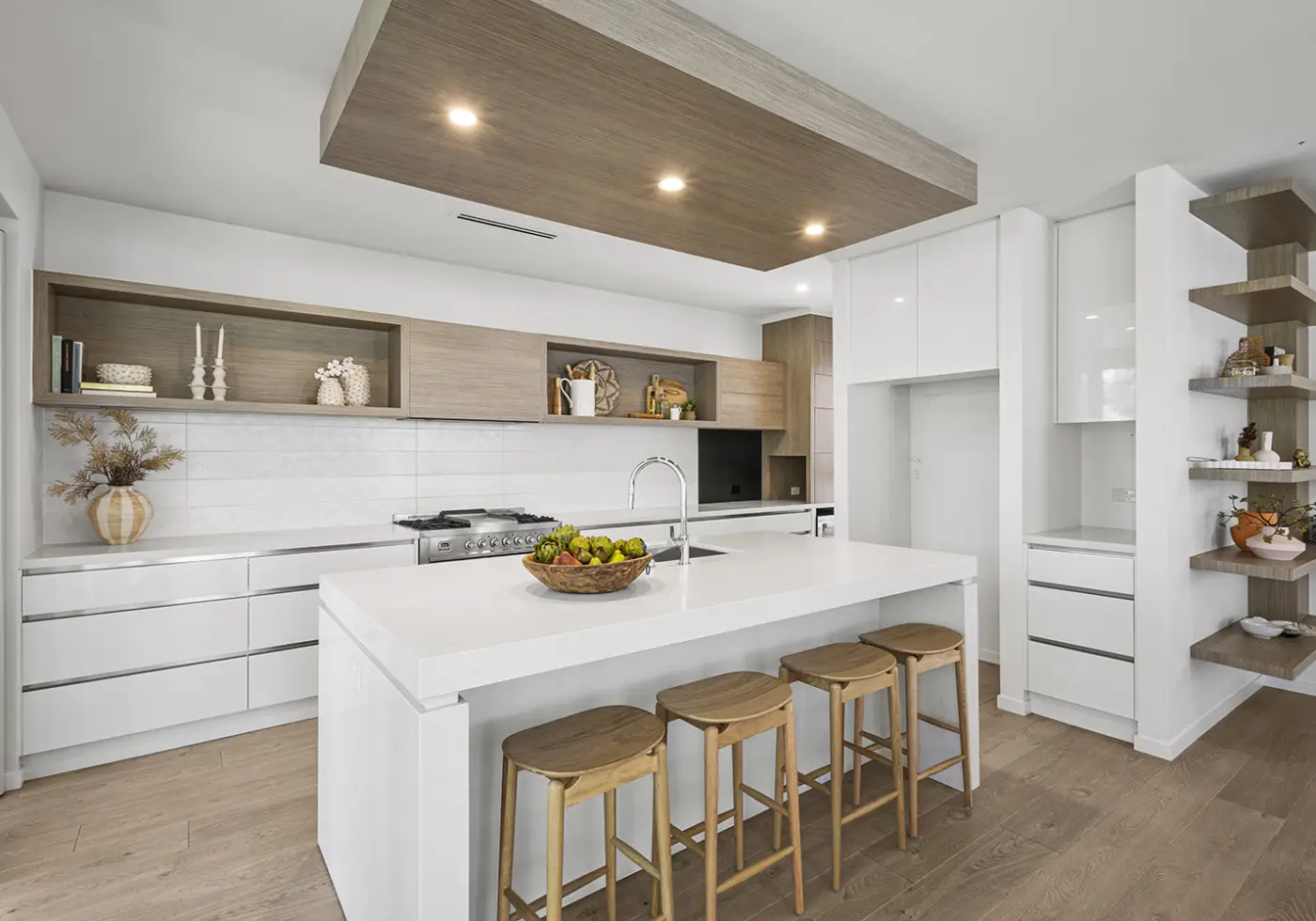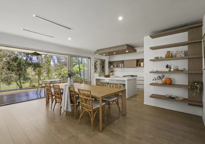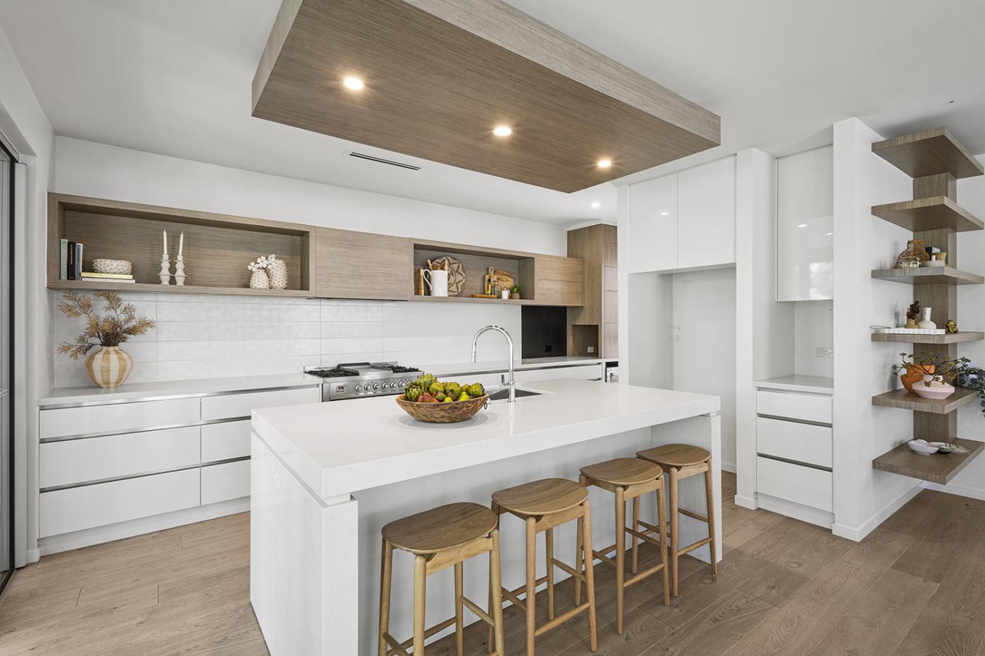 At the heart of the residence is a true gourmet kitchen, featuring premium appliances, sleek cabinetry and a generous island bench, seamlessly supported by a fully appointed butler’s pantry—perfect for entertaining and everyday living alike.